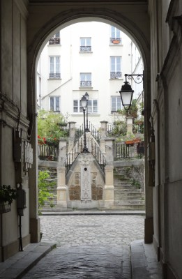 A Jewish community lived in the eight floors of apartments surrounding this pleasant courtyard with fountain, lamps, and double staircase. La Cour aux Juifs, built into the hillside of Montmartre, was one of many Jewish neighbourhoods in Paris that suffered a terrible fate under Nazi Occupation.