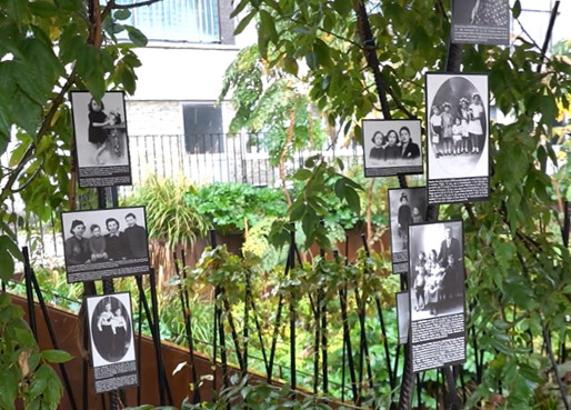 Opposite the wall is a “garden of children” documenting some of their lives: names and photographs of children and parents, along with their last Paris address, dates of arrest and deportation, and the identification number of the convoy in which they were transported to a death camp.