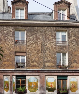 The paths of several medieval streets somehow escaped Haussmann’s reconfiguration in the area of the Marais just east of l’Hôtel de Ville. It’s an ancient wedge of Paris, a solid little hamlet boasting two baroque churches, notable hôtels particuliers, a section of Philippe-Auguste Wall, and Village St-Paul, among other treasures.
