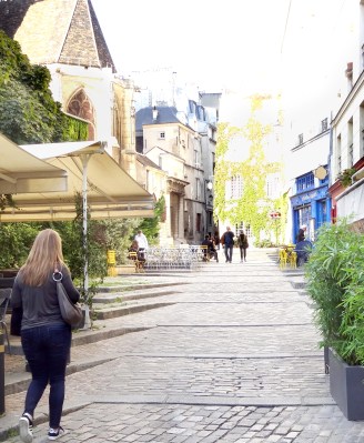 Rue Mouffetard has medieval roots, but it goes back farther to Gallo-Roman times, when it continued southward toward Italy and ultimately, Rome. It’s more ancient yet: the Romans lay stones along a Neolithic lane. Thousands of years later, here we are:
