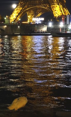 Below: a sleeping swan along the Seine, its beak nestled in its wing. Possibly a royal descendant.