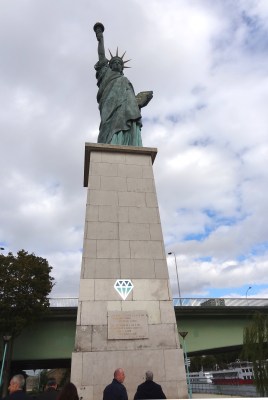Swan Island is also linked with the overthrow of monarchy by both the American and French Revolutions: a monumental Statue of Liberty raises her torch at the foot of the island. For the centennial of the American Declaration of Independence in 1876, the people of France proposed to the United States the creation of the colossal copper Statue of Liberty by French sculptor Bartholdi. The statue thus celebrates the alliance between the two countries in liberating the American colonies from the royal British yoke.