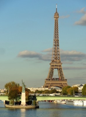 After the Statue of Liberty was installed on Ellis Island, the 1889 centennial of the French Revolution rolled around. The American expat community in Paris returned the compliment by presenting their adopted city with a quarter-size replica of Bartholdi’s statue, which found a fortuitous home at the downstream end of Swan Island.
