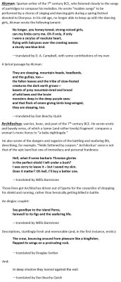 Below are brief selections — some of my favourites — from two very different ancient Greek poets: Alcman and Archilochus.