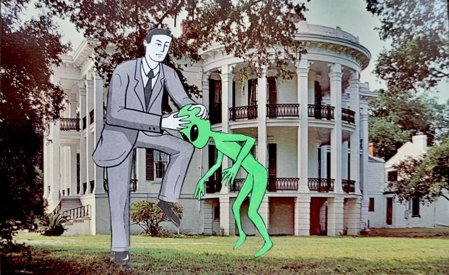 Postcard collage: Men in black #2 (Nottoway Plantation)