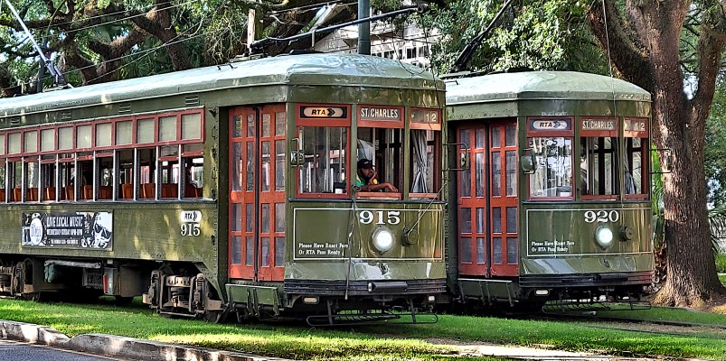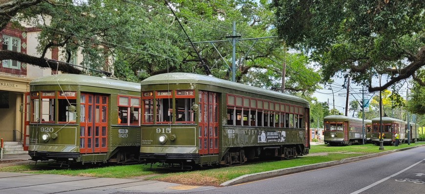 One early morning I set out for Riverbend, where streetcars turn from St. Charles Avenue onto Carrollton Avenue. I was amazed to see a pileup of six streetcars stopped in their tracks on St. Charles.
