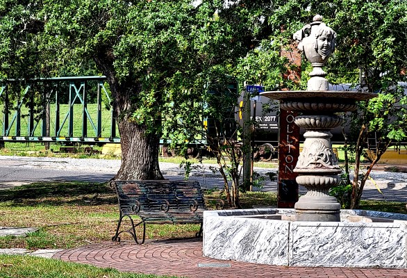 Dublin Park at Riverbend. The fountain was dry, the park vacant. Maybe it was just too darned hot.