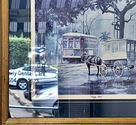 A mule-drawn wagon has sold “Roman Candy gourmet taffy” along the streets of New Orleans since 1915. A print of the iconic “Taffy Man” decorates a dental waiting room with ironic levity, a NOLA specialty . . .
