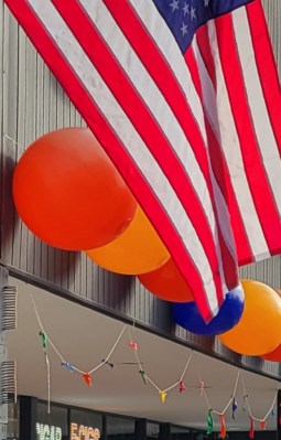 Garland of popped balloons at a new manicure shop on Carrollton Avenue