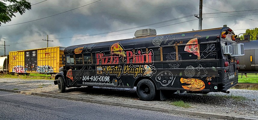 Party bus at the train tracks