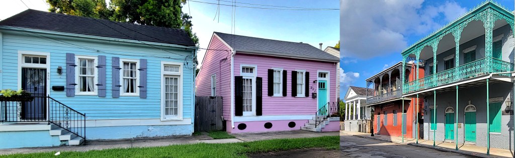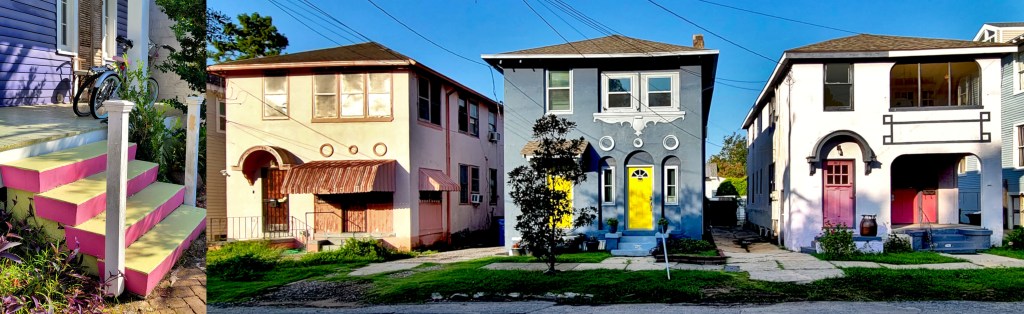 Below: a montage of Mardi Gras photos I took of the St. Ann walking parade in the French Quarter. It’s not hard to see the influence of costumes and beads on the city’s houses . . .