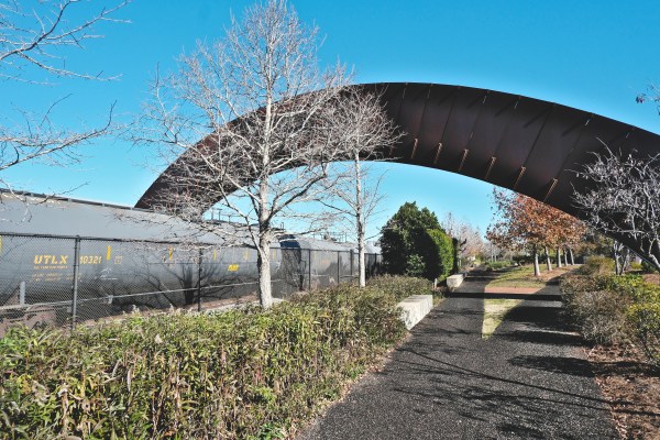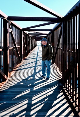 Starting in the Marigny neighborhood (just east of the French Quarter), an iron bridge reminiscent of the cargo compartments of a freight train crosses the New Orleans Public Belt Railroad and leads to the river.