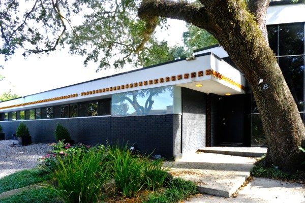 Albert Ledner, a student of Frank Lloyd Wright, designed the “Ashtray House,” a mid-century modernist home on Park Island in New Orleans. Ashtrays adorn the exterior and interior of the home, built for a couple who smoked.