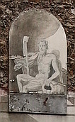 A still closer view reveals a trompe l’oeil fresco, perhaps a painted image of a traveler soaking his feet in a real tub? There must be a story here. I can see it in the man’s eyes.