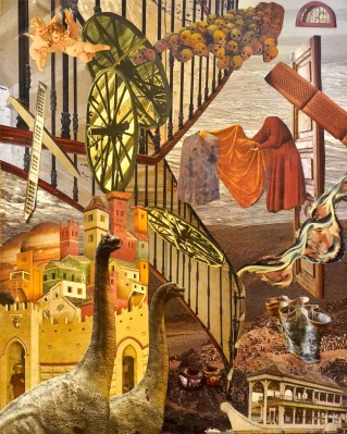 Postcard collage (Lauren S. Harris, Mountains in Snow, 1929)